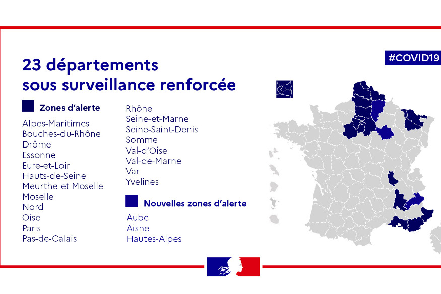 MISE A JOUR JEUDI 4 MARS 2021 - Le Premier Ministre Jean Castex a donné une nouvelle conférence de presse ce jeudi 4 mars 2021 pour annoncer que 3 départements supplémentaires étaient désormais en surveillance renforcée : l'Aisne, l'Aube et les Hautes-Alpes. Concernant les 20 premiers départements qui sont en surveillance renforcée depuis 8 jours, un seul va être confinés les week-ends : le Pas-de-Calais. Il rejoint le littoral des Alpes Maritimes et Dunkerque qui ont déjà connu un premier week-end de confinement le 27 février dernier. ------------------------------------------ ARTICLE DU 25......
